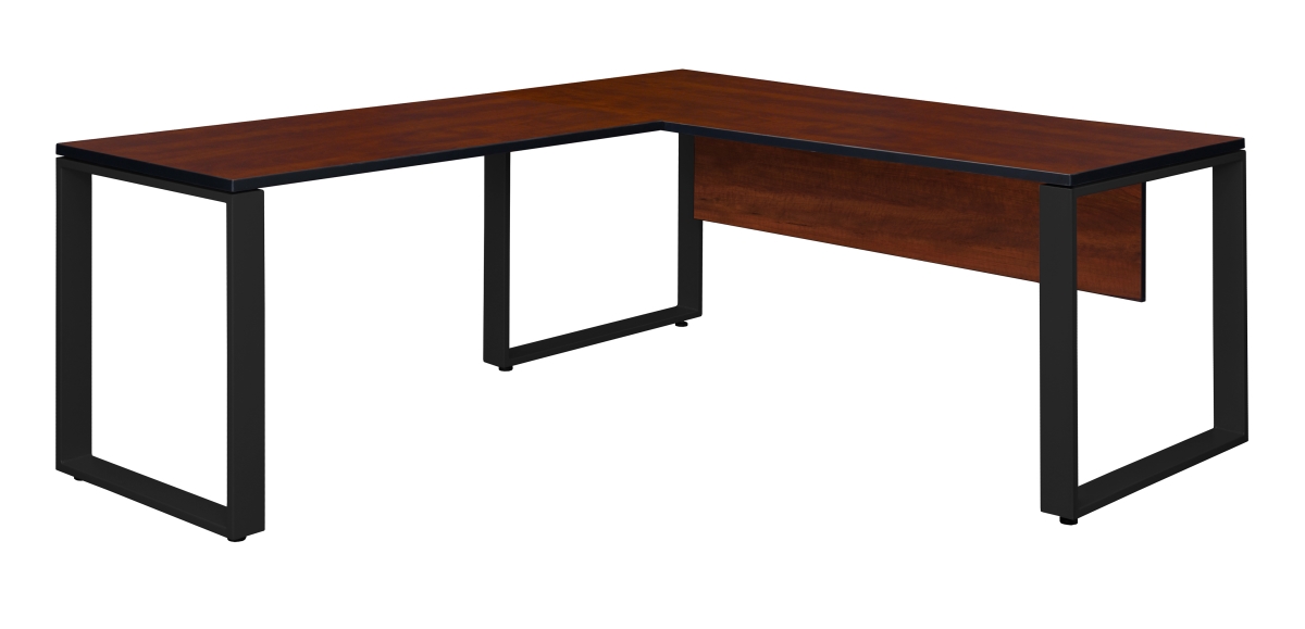 Desk Shell, 78 D, 66 W, 29 H, Black|Cherry, Wood|Metal