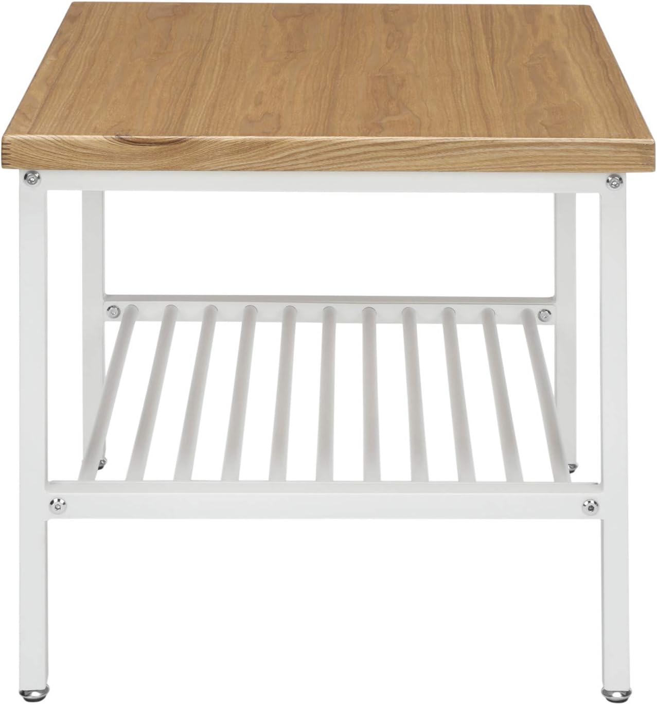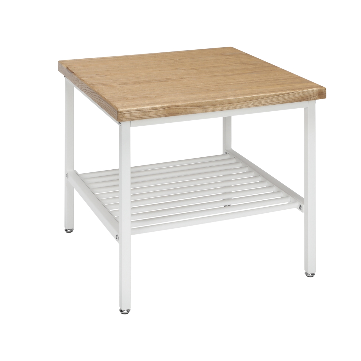 OFM 161 Collection Industrial Modern Wood Top/Metal Frame Side Table with Metal Shelf, in White/Natural