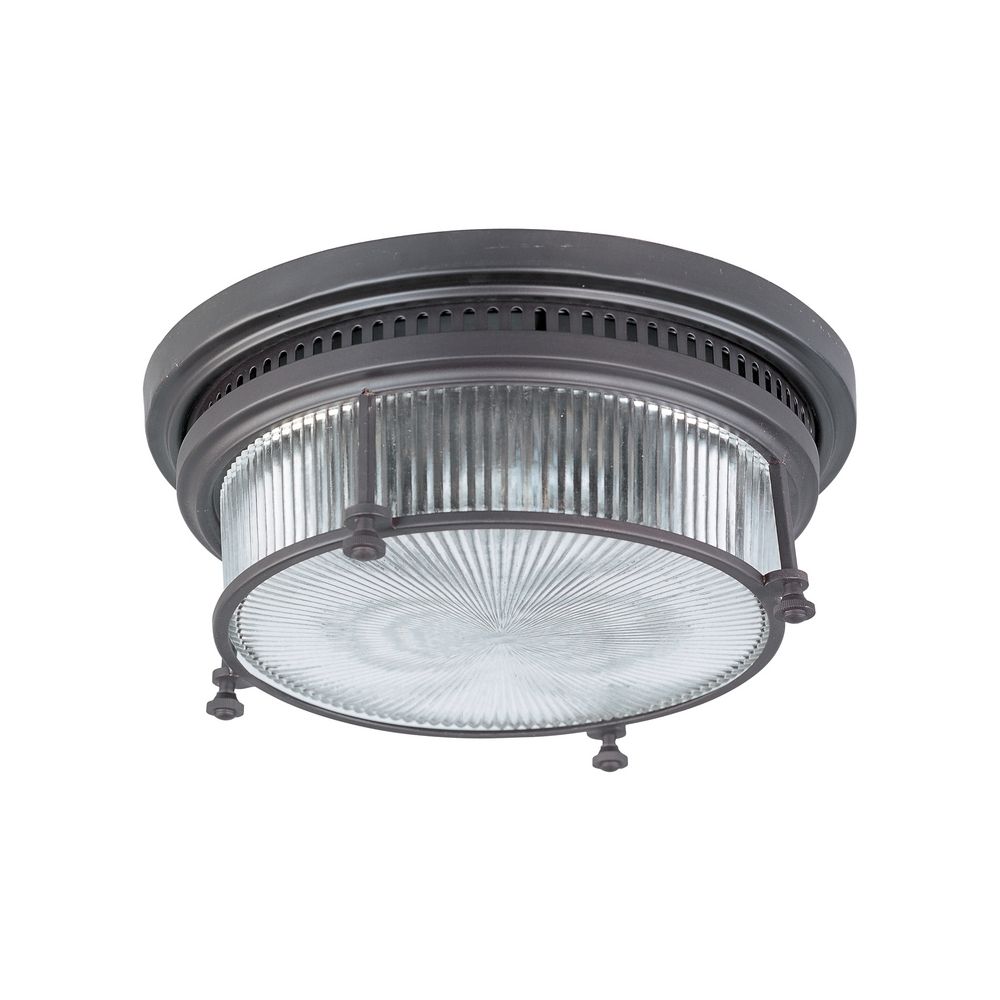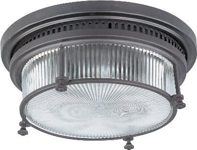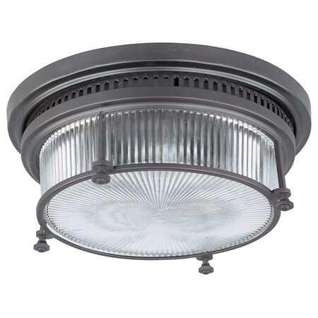 Maxim 25000CLBZ Hi-Bay Industrial Clear Halophane Glass Drum Flush Mount Ceiling Lighting, 2-Light 120 Total Watts, 5" H x 13" W, Bronze