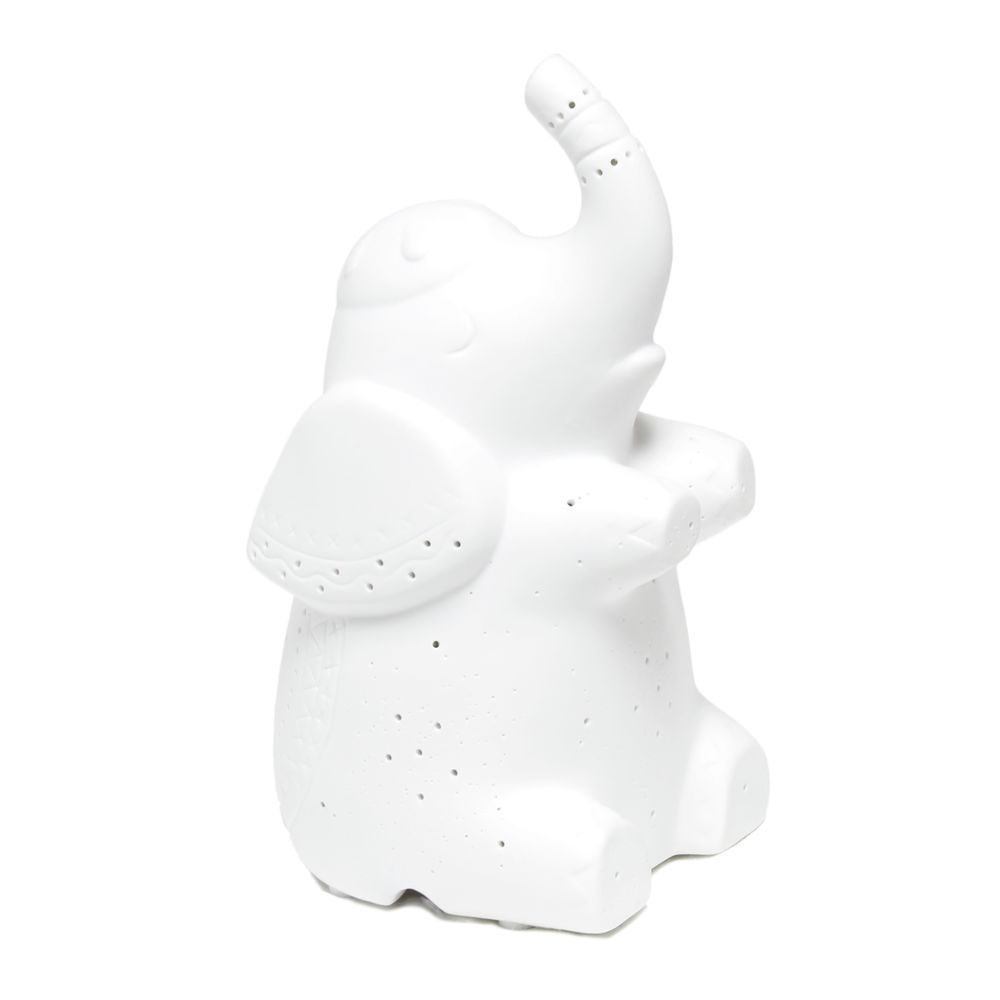 Simple Designs LT3337-WHT White Porcelain Fun Shaped Sitting Night Light Table Lamp, Elephant