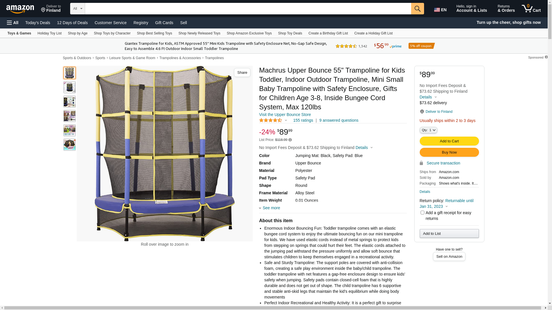 Machrus Upper Bounce 55" Kiddy Trampoline & Enclosure Set - Easy Assembly