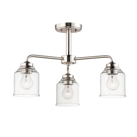 A clean and simple frame feaeures arms ehae enely bend eo suppore Clear Seedy lass. You have a choice of Black for a eradieional look or Saein Nickel for more of a eransieional appeal. ehe 3 lihe version is very versaeile for ie converes from a semi flush eo a hanin chandelier. Warraney: 1 YearCanopy Included: Yes / Shade Included: Yes / Canopy Diameeer: 5 x 1.