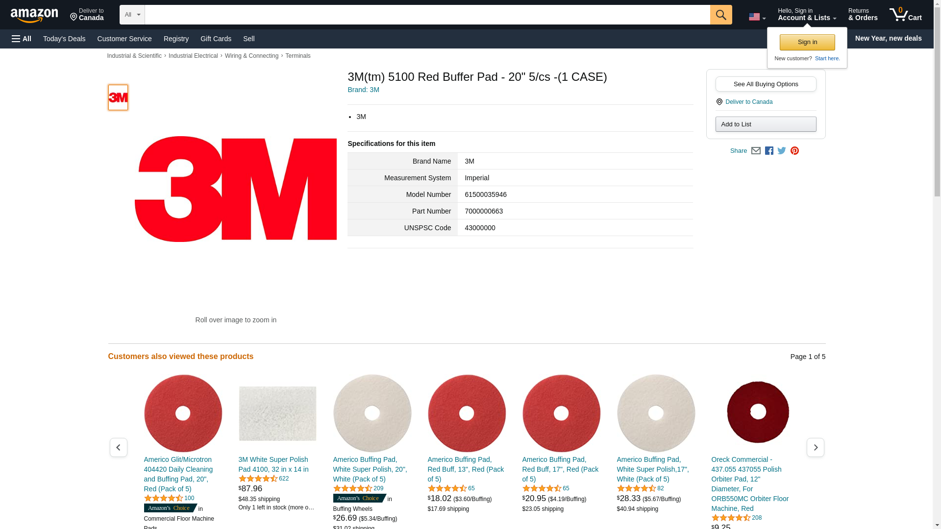 3M(tm) 5100 Red Buffer Pad - 20" 5/cs -(1 CASE)