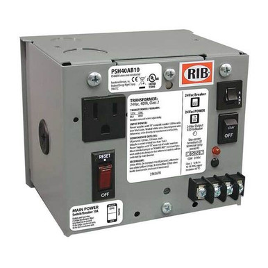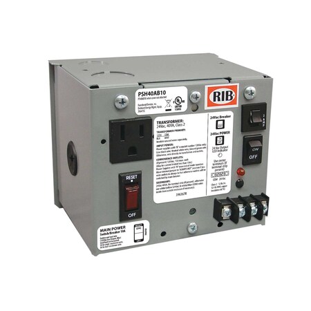 Functional Devices (RIB) PSH40AB10 Enclosed Single 40VA 120 to 24Vac UL class 2 power supply 10A main breaker