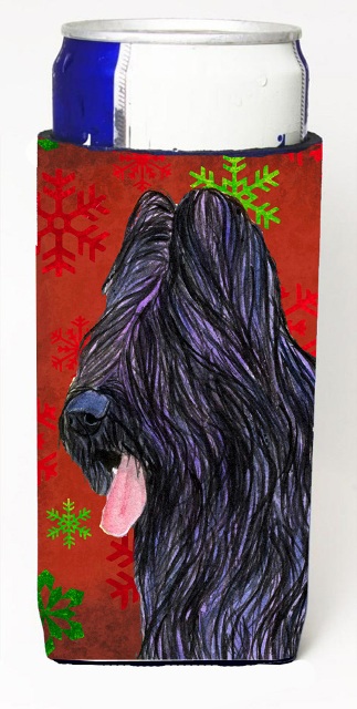 Caroline's Treasures SS4696MUK Briard Red and Green Snowflakes Holiday Christmas Ultra Hugger for slim cans Can Cooler Sleeve Hugger Machine Washable Drink Sleeve Hugger Collapsible Insulator Beverage
