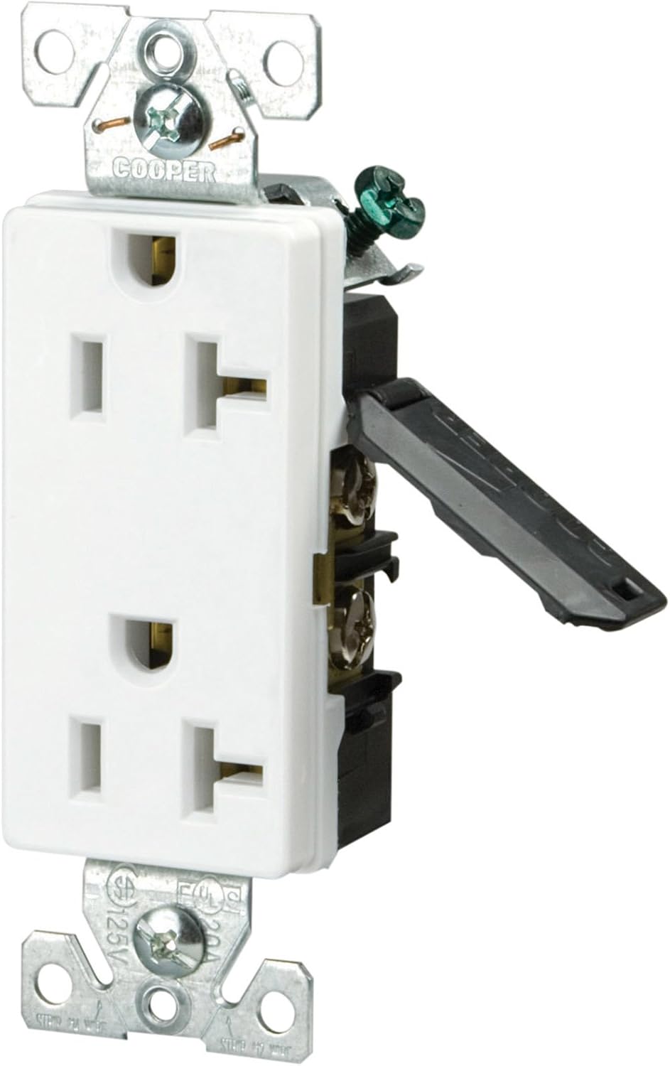 The Eaton 6342W 20-Amp 125-Volt 5-20r decorator Duplex industrial grade receptacle. Designed from the inside out, these receptacles meet and exceed the UL 498 and federal Specification wc-596 standards to withstand the most abusive environments and excel in applications that demand the highest levels of performance.