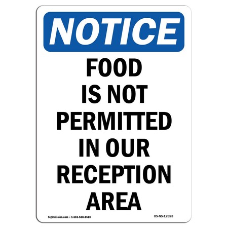 OSHA Notice Sign, Food Is Not Permitted In Our Reception, 18in X 12in Decal