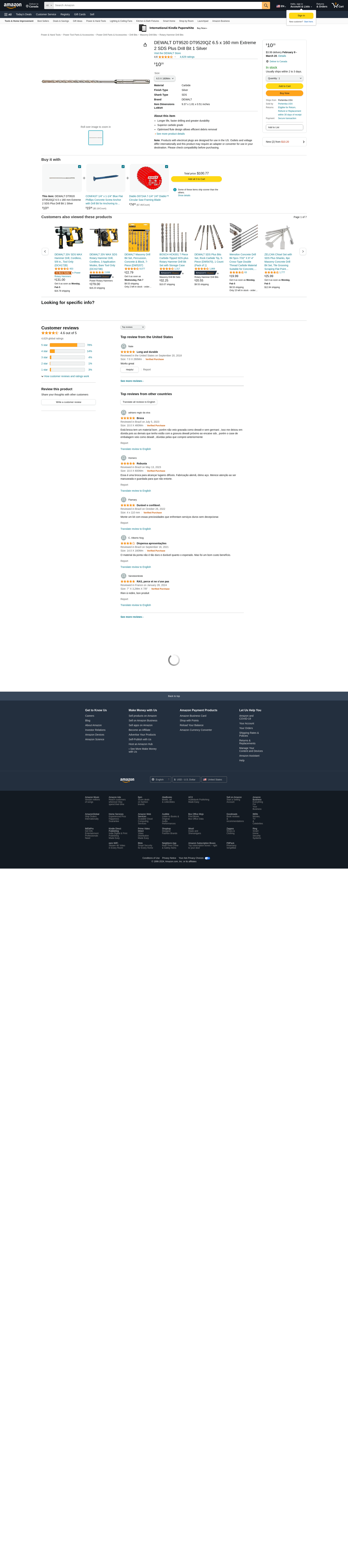 DEWALT DT9520 DT9520QZ 6.5 x 160 mm Extreme 2 SDS Plus Drill Bit 1 Silver