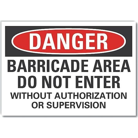Do Not Enter Danger Reflective Label, Horizontal Rectangle, Number of Printed Sides 1, English, Sign Format Traditional OSHA, Sign Legend Barricade Area Do Not Enter Without Authorization Or Supervision, Sign Legend Background Color White, Sign Legend Style Text