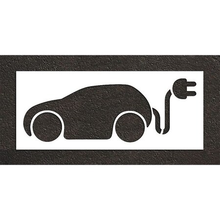 Pavement Stencil, Character Height 36 In., Character Width 95 In., Material Polyethylene, Thickness 0.125 In., Overall Height 45 In., Overall Width 105 In., Self-Adhesive No, Magnetic/Nonmagnetic Nonmagnetic, Reusable Yes, Number of Pieces 1, Color White, Stencil Type Symbol, Stencil Application Parking Lot, Stencil Character Electric Car Logo, Interlocking No, Duty Heavy