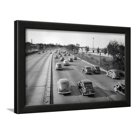 <ul> <li>Title: North Bound Lake Shore Drive in Chicago, Ca. 1946.</li> <li>Artist: Kirn Vintage Stock</li> <li>Paper Type: Photographic Print</li> <li>Product Type: Framed Art Print</li> <li>Framed in SOHO Black</li> <li>Arrives ready-to-hang for fast, simple installation</li> <li>Framed Size: 20x14 in.</li> <li>Handcrafted in the USA</li> </ul>