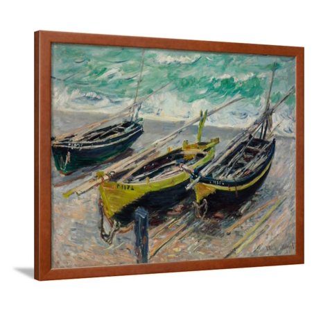 <ul> <li>Title: Three Fishing Boats, 1886</li> <li>Artist: Claude Monet</li> <li>Paper Type: Giclee Print</li> <li>Product Type: Framed Art Print</li> <li>Framed in SOHO Pecan</li> <li>Arrives ready-to-hang for fast, simple installation</li> <li>Framed Size: 34x27 in.</li> <li>Handcrafted in the USA</li> </ul>