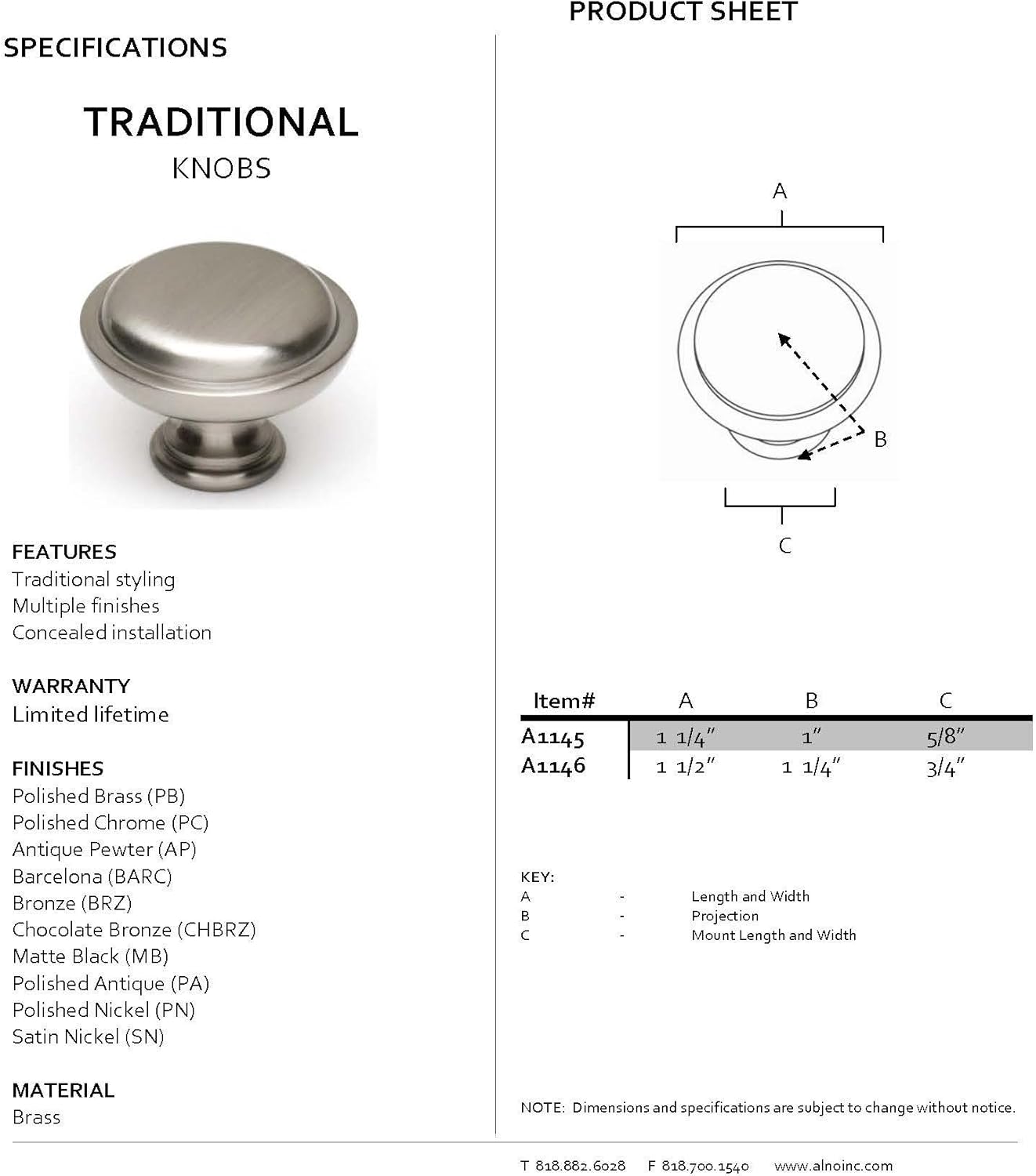 Alno A1145-BARC Traditional Knobs, Barcelona, 1-1/4"