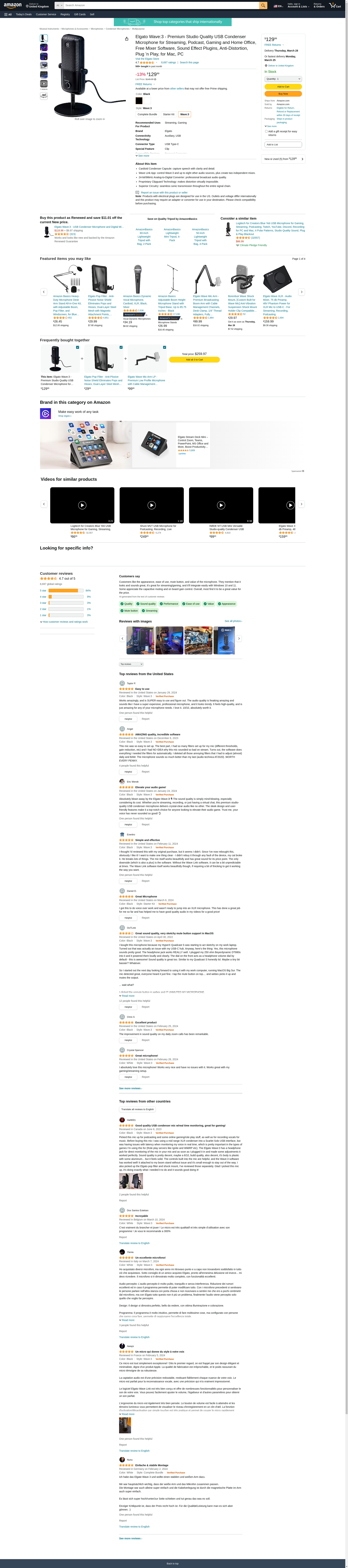 Elgato Wave: 3 – USB Condenser Microphone and Digital Mixer for Streaming, Recording, Podcasting - Clipguard, Capacitive Mute, Plug & Play for PC / Mac