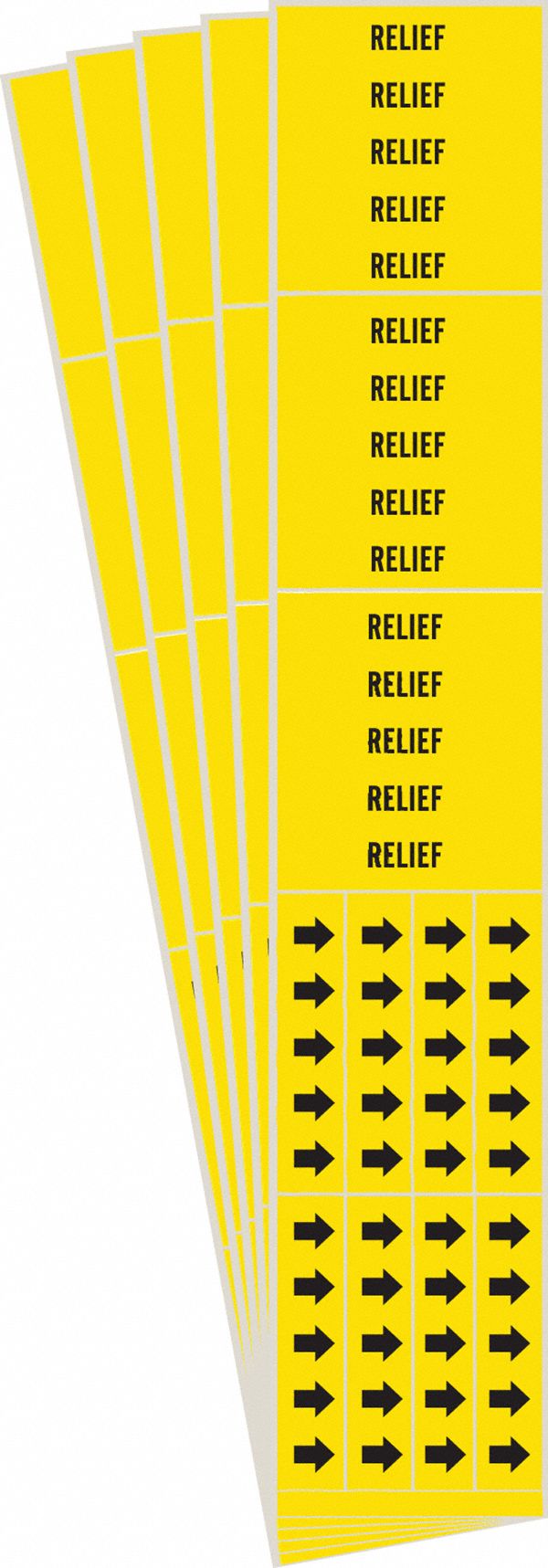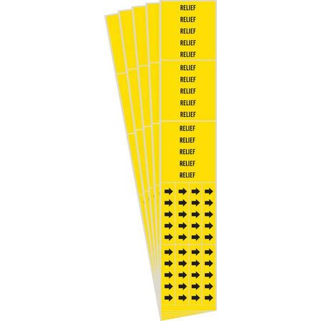 Brady 7239-3C-PK, Relief Pipe Marker with Arrows Black on Yellow 3 per Card, 5 PK, Legend 'Relief'
