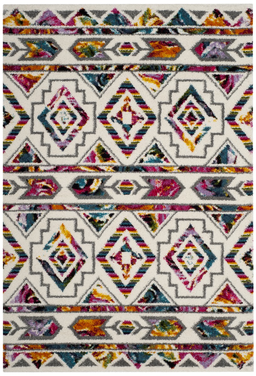 Safavieh FSG365A-3 Fiesta Shag Power Loomed Small Rectangle Area Rug, Cream & Multicolor - 3 x 5 ft.
