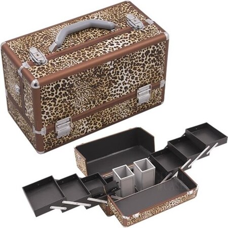 Hiker HK3201 3-Tier Professional Aluminum Case with Accordion Trays and 2 Brush Holders, 15-Inch, Leopard Texture Printing