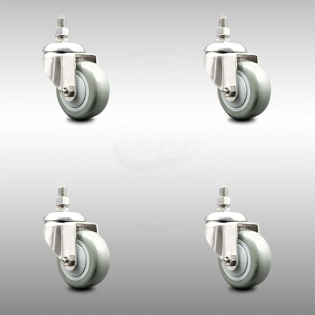 Service Caster Brand 3 Inch 316 Stainless Steel Light Duty Threaded Stem Caster Set of 4 Gray Polyurethane Caster Wheels and ½” Stem–1,200lbs. Total Cpty–Swivel Casters