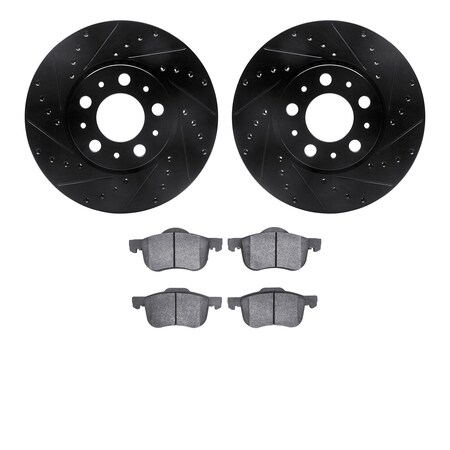 Dynamic Friction Company Front Brake Rotors-Drilled and Slotted-Black with 3000 Series Ceramic Brake Pads 8302-27048
