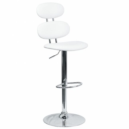 Flash Furniture Dexter Contemporary White Vinyl Adjustable Height Barstool with Ellipse Back and Chrome Base