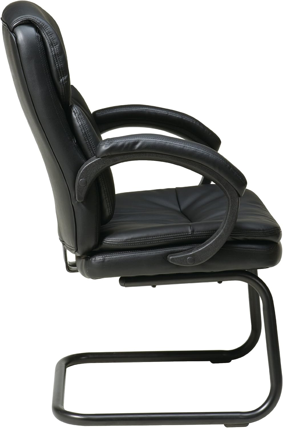 Office Star Thick Padded Contour Seat and Back with Padded Armrests Black Eco Leather Sled Base Visitors Chair