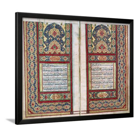 <ul> <li>Title: Double Page Spread from a Koran with Illuminated Borders, North Indian, 1838</li> <li>Paper Type: Giclee Print</li> <li>Product Type: Framed Art Print</li> <li>Framed in SOHO Black</li> <li>Arrives ready-to-hang for fast, simple installation</li> <li>Framed Size: 33x27 in.</li> <li>Handcrafted in the USA</li> </ul>