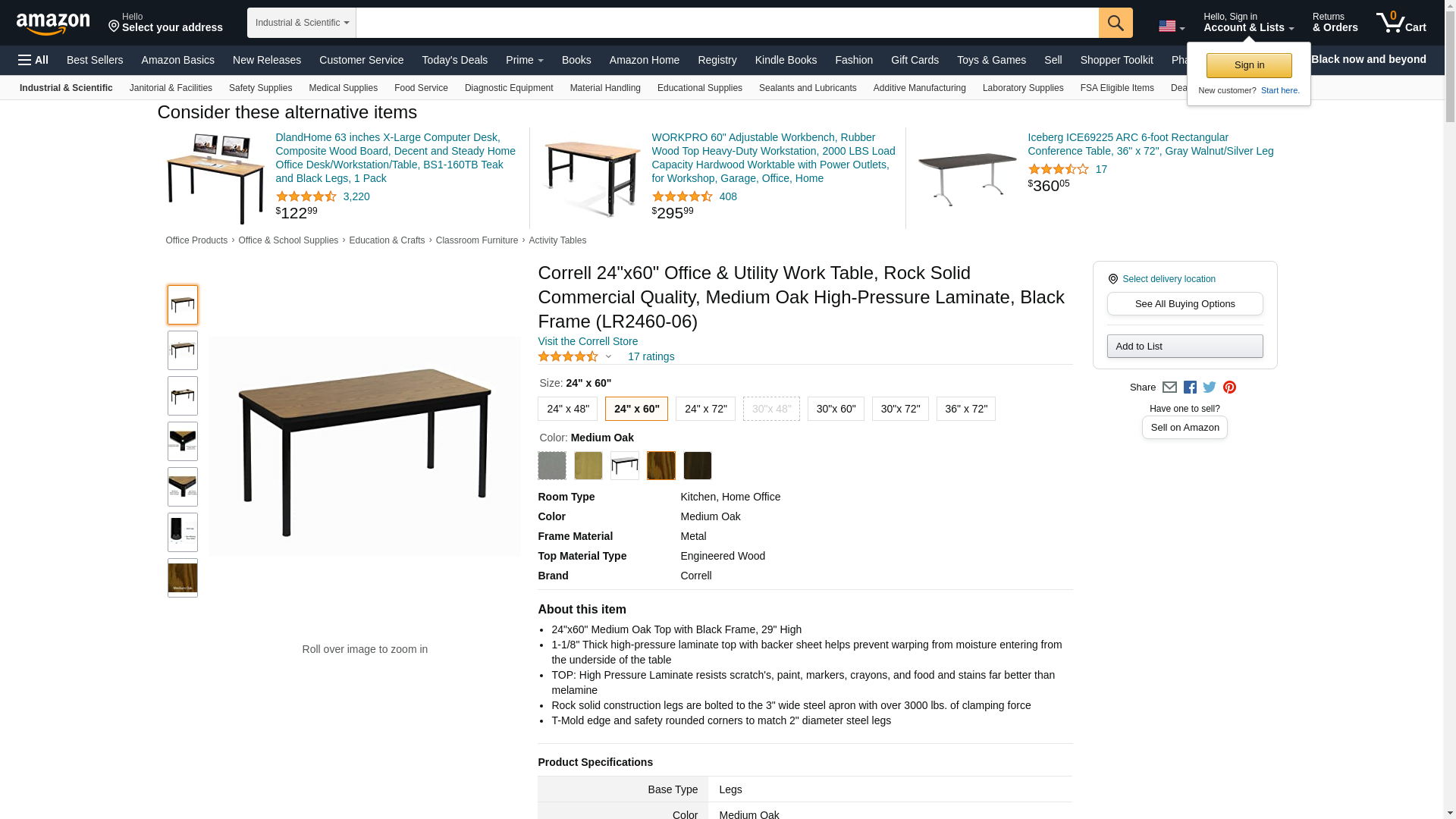 Correll 24"x60" Office & Utility Work Table, Rock Solid Commercial Quality, Medium Oak High-Pressure Laminate, Black Frame (LR2460-06)