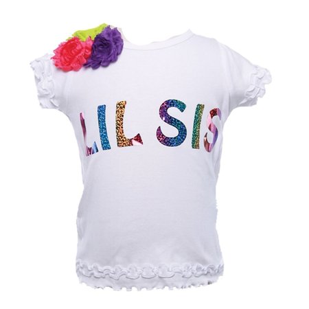 <ul> <li>A cute "Lil Sis" white top for your little girl from boutique brand Reflectionz</li> <li>The top is styled with ruffled hem at the bottom and at the short sleeves</li> <li>The top is decked with fabric flowers for an enchanting pop of color</li> <li>Fabric and care: 100% Cotton. Hand wash/Line dry</li> <li>Sizing is based on U.S. clothing size standards</li> </ul>