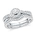 10kt White Gold Womens Round Diamond Halo Bridal Wedding Engagement Ring Band Set 1/2 Cttw. | Combined diamond weight of 1/2 carats total weight represents a range of 0.46 - 0.57 cts. t.w. | Stone 2: Diamond; 1/3 ct.t.w.; H-I color; I1-I2 clarity; Pave setting; Treatment - Not-treated