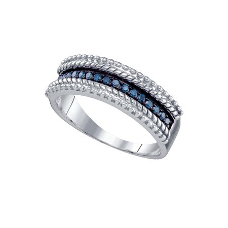 <p><span style="font-size:16px;"><b><u>Description</u></b><br /></span></p> <p><span style="font-size: 14px;">Sterling Silver Womens Round Blue Colored Diamond Milgrain Band Ring 1/4 Cttw</span></p> <br /> <p><span style="font-size:16px"><u><b>Gemstone Details</b></u></span></p> <p><span style="font-size:14px">1/4 Carats total weight<br /><br />All diamonds are natural and conflict-free in origin<br /><br /><b>Round Colored Blue Diamond</b><br /></span></p> <li>1/4 ct.t.w.</li> <li>I2-I3 clarity</li> <li>Blue color</li> <li>Pave setting<br /><p><span style="font-size:16px"><u><b>Specifications</b></u><br /></span></p><p><span style="font-size:14px">Sterling Silver<br />2.97 grams (approximately)<br />Ring size selectable</span></p><p><span style="font-size:11px">All colored diamonds are treated to permanently alter their appearance.</span></p><p><span style="font-size:11px">Combined diamond weight of 1/4 carats total weight represents a range of 0.23 - 0.29 cts. t.w.</span></p></li>