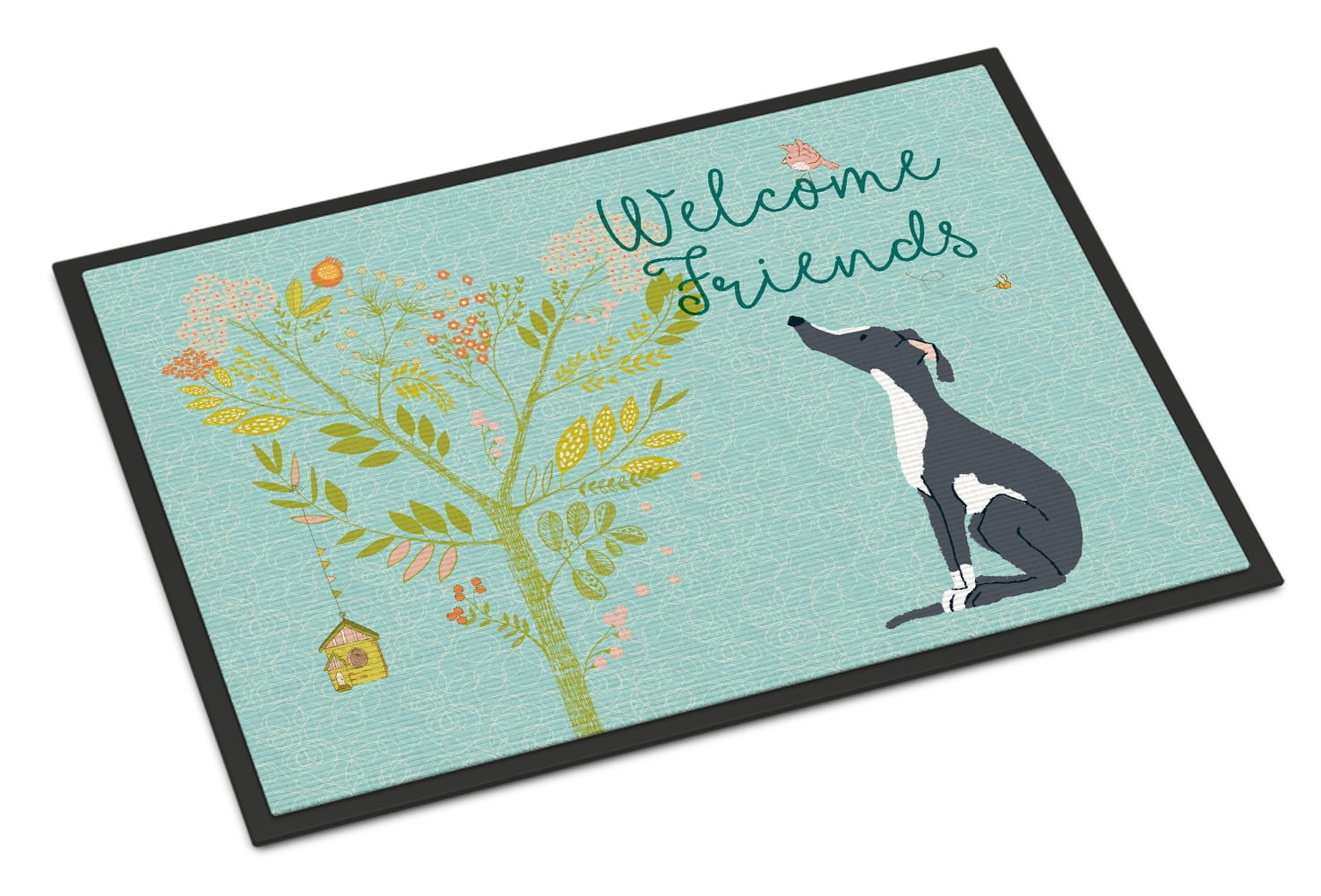 Caroline's Treasures BB7592JMAT Welcome Friends Black White Greyhound Door Mat, Indoor Rug or Outdoor Welcome Mat 24x36 Doormat, 36" L x 24" W, Multicolor