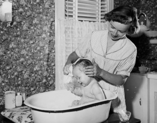 Posterazzi SAL2559884A Young Woman Washing Her Son in a Bathtub Poster Print - 18 x 24 in.