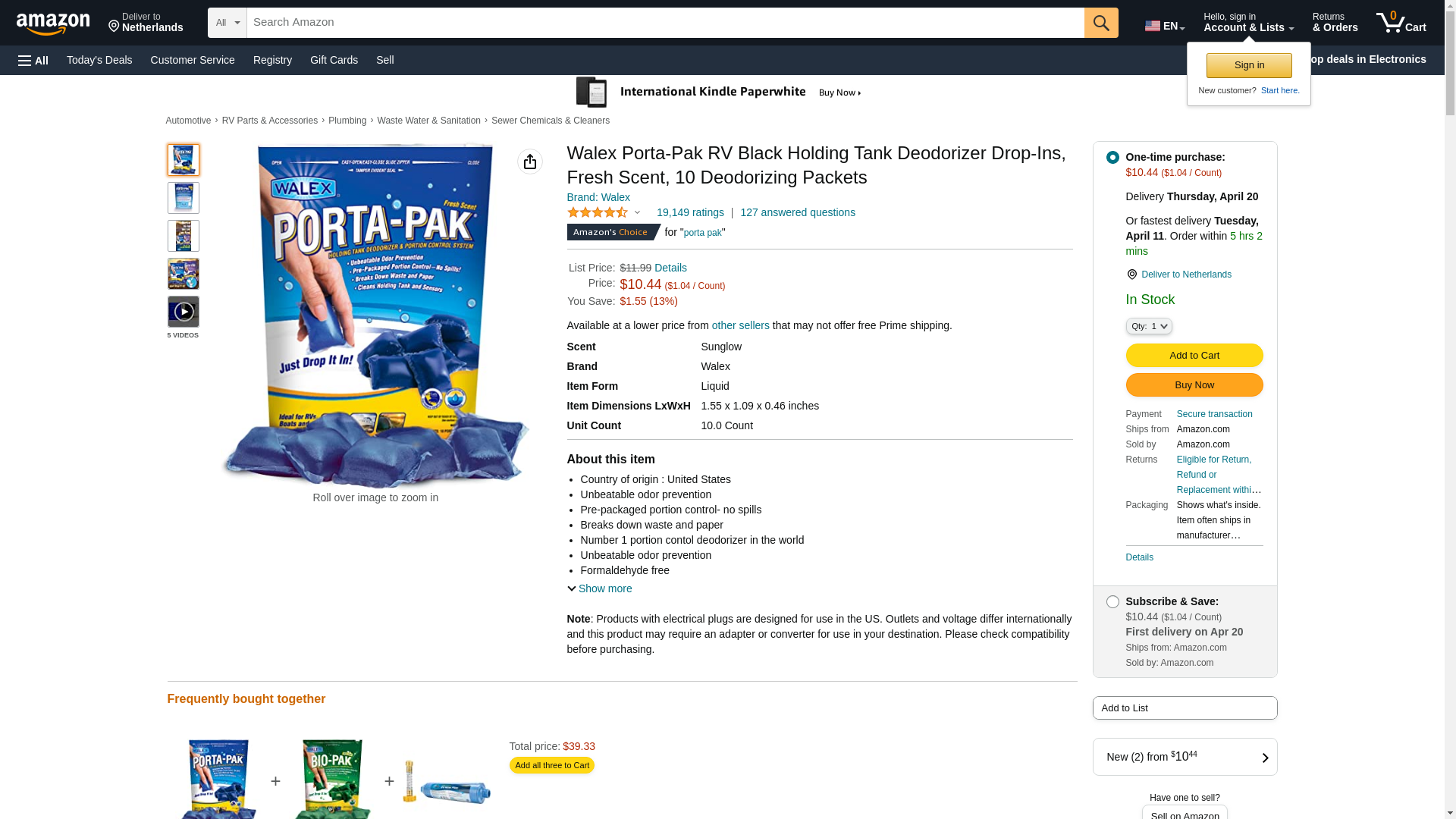Walex Porta-Pak RV Black Holding Tank Deodorizer Drop-Ins, Fresh Scent, 10 Deodorizing Packets (Pack of 2)