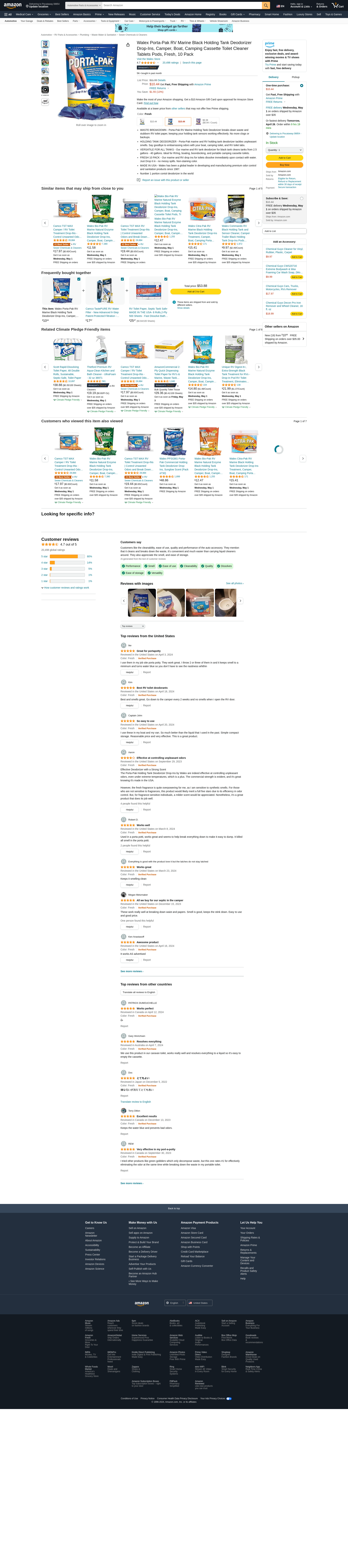 Walex Porta-Pak RV/Marine Black Holding Tank Deodorizer Drop-Ins, Camper, Boat, Camping Cassette Toilet Cleaner Tablets Pods, Odor Control Eliminator, Fresh, 10 Pack
