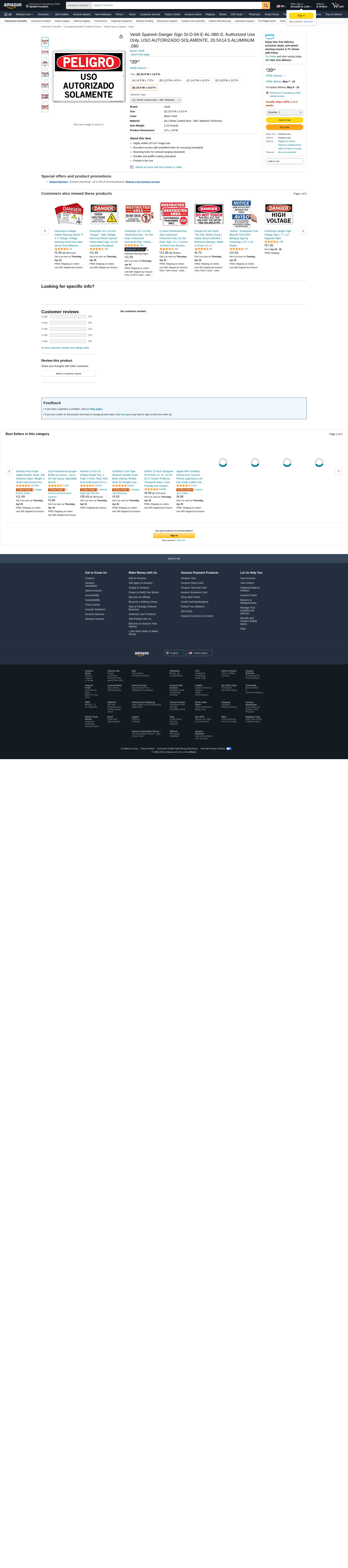 Vestil Spanish Danger Sign SI-D-04-E-AL-080-S, Authorized Use Only, USO AUTORIZADO SOLAMENTE, 20.5X14.5 ALUMINUM .080
