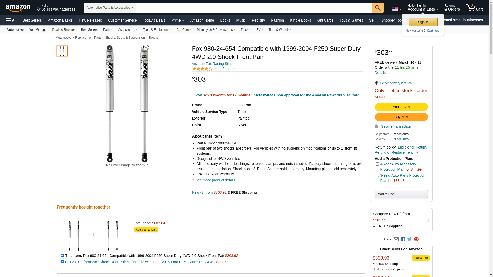 Fox 2.0 Performance Shock Front Pair 1999-2004 Ford F250 Super Duty 4WD