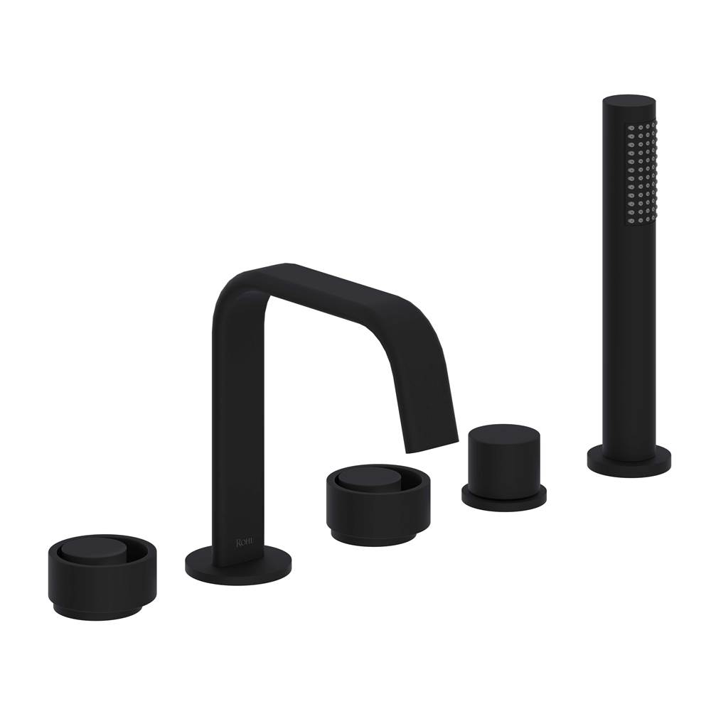 ROHL EC05D5IWMB ECLISSI FIVE HOLES DECK MOUNT TUB FILLER U SPOUT WITH CIRCULAR HANDLES, MATTE BLACK
