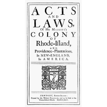 Rhode Island Acts And Laws NActs And Laws Of His MajestyS Colony Of Rhode-Island And Providence-Plantations In New-England In America Printed By Ann Smith Franklin Sister-In-Law Of Benjamin Franklin I