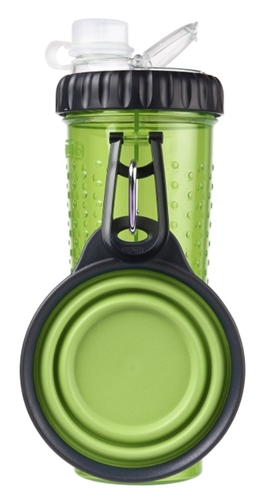 - One collapsible pet bowl/dog dish with a one cup capacity is included. It clips onth the bottle for convenience, and ealsily pops open and closed