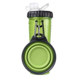 Dexas Popware for Pets Snack Duo Dual Chambered Hydration Bottle and Snack Container with Collapsible Pet Cup, Green