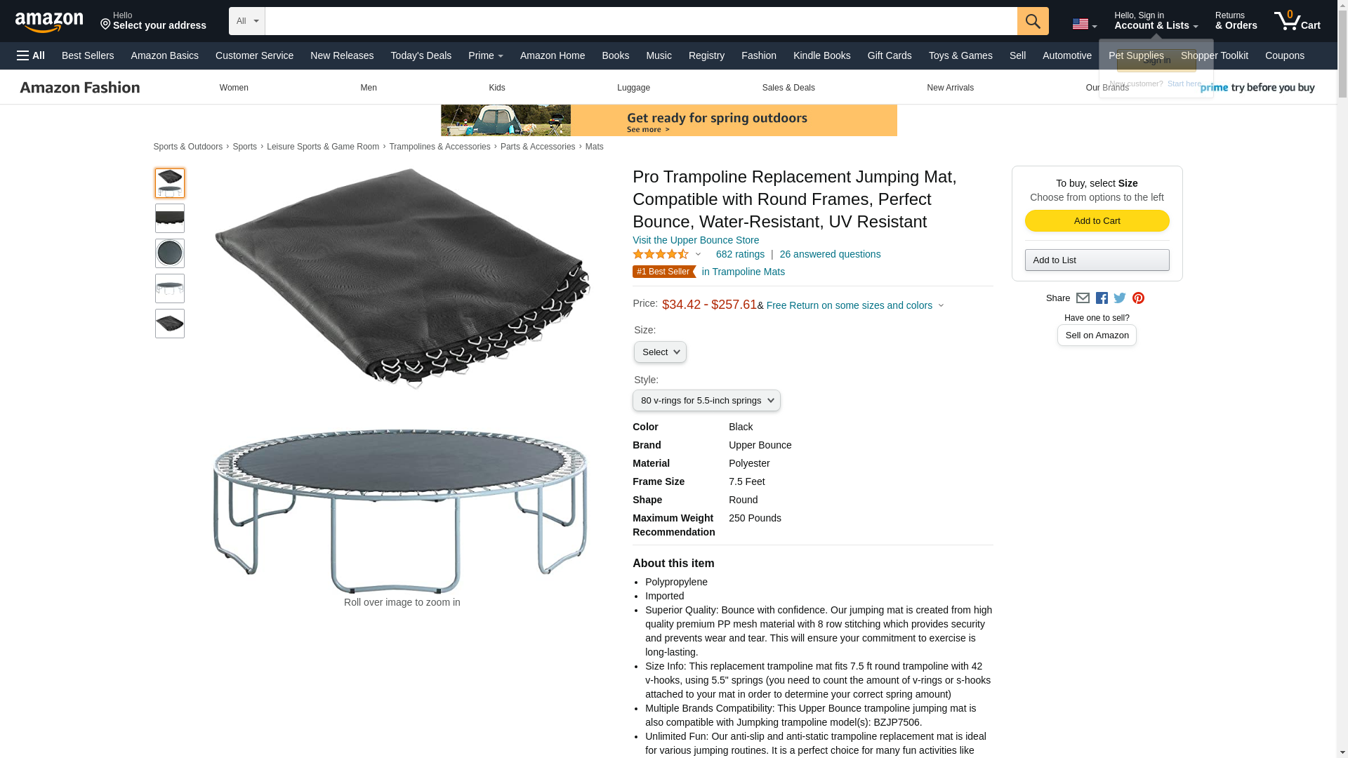 | Feature | Trampoline Frame size:\xa0Made for a 12 FT. Round Trampoline (for your trampoline size: measure frame from one outside edge vertically and horizontally to the other outside edge, make sure to measure it both ways to confirm your size) |
