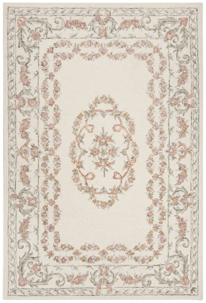 Safavieh AUB102A-6SQ Aubusson Traditional Square Hand Tufted Rugs, Ivory & Pink - 6 x 6 ft.