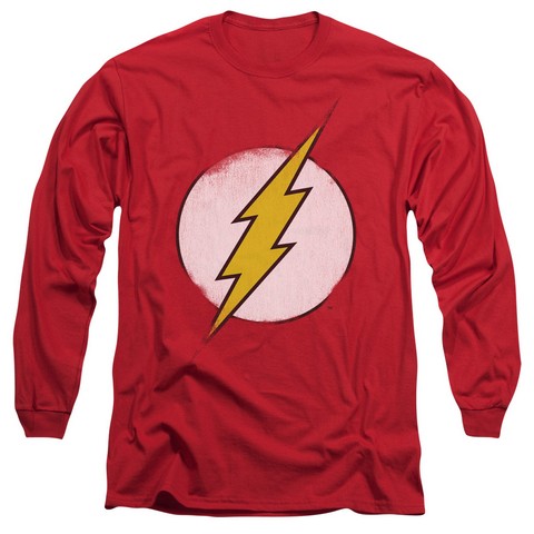 "DC Comics The Flash Rough Flash Logo Men's Long Sleeve T-Shirt Small Red"