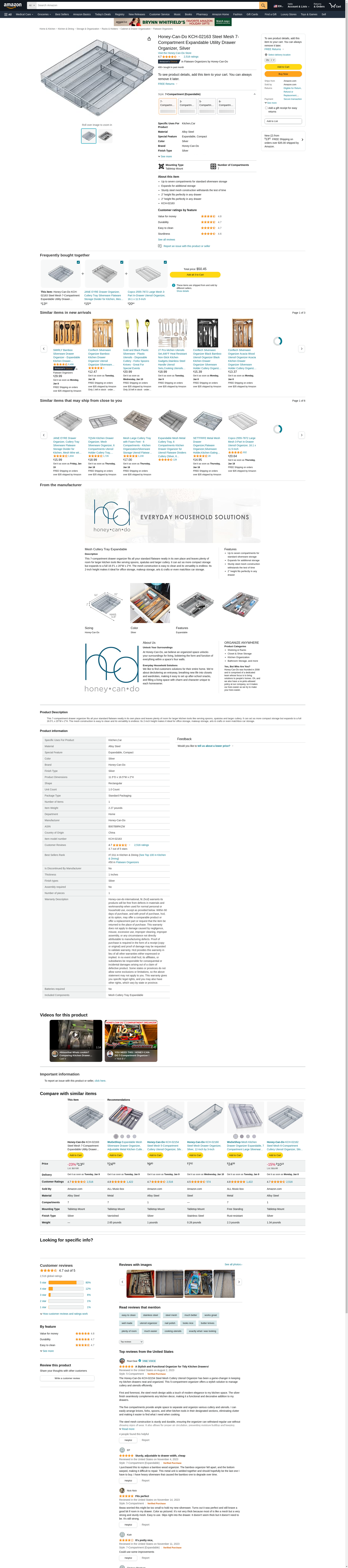 Honey-Can-Do KCH-02163 Steel Mesh 7-Compartment Expandable Utility Drawer Organizer, Silver