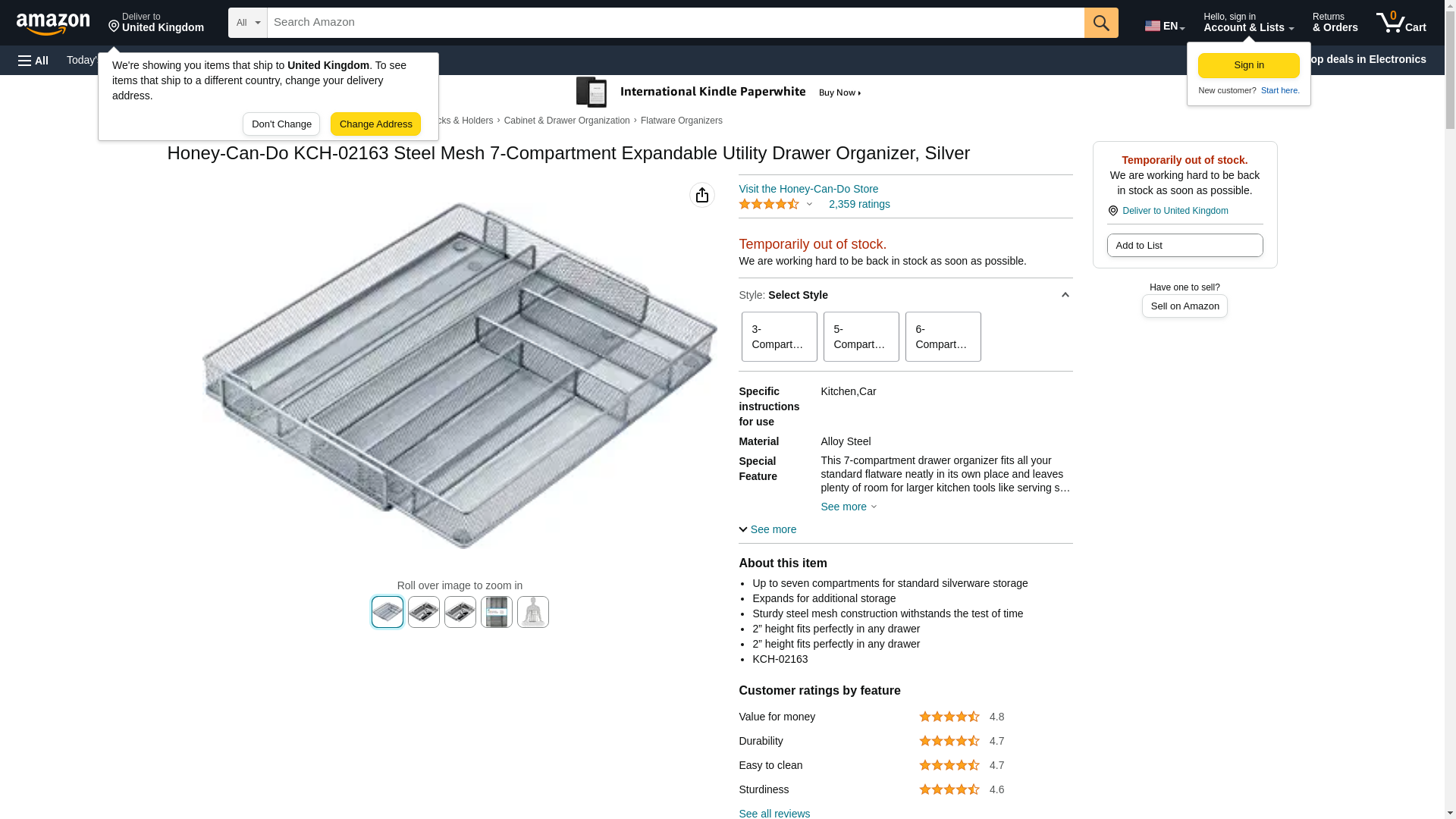 Honey Can Do Intl KCH-02163 Drawer Organizer, Expandable, Silver Steel Mesh, 16.5 x 20.25 x 2-In. - Quantity 1