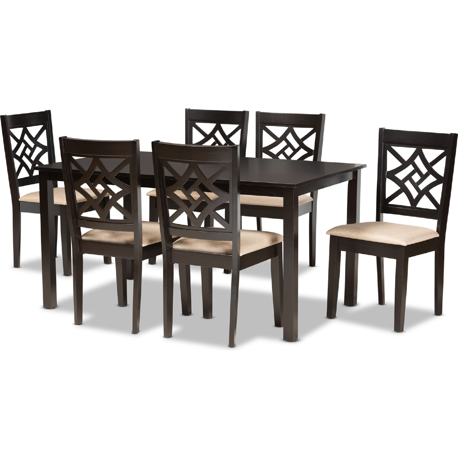 Baxton RH340C-Sand/Dark Brown-7PC Dining Set Nicolette 7 Piece Dining Set in Sand Fabric & Dark Wood