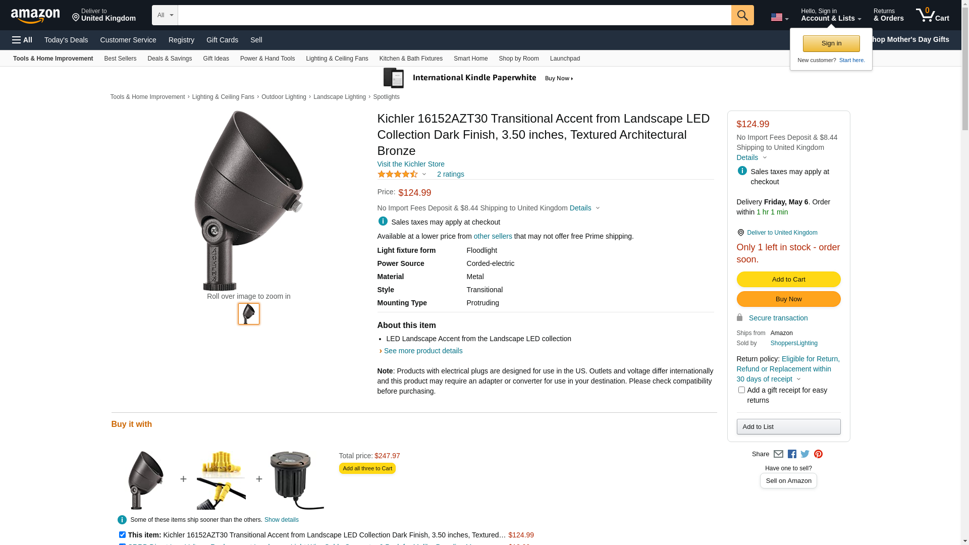 | brecherslighting.com | 16152AZT30 | 1 | 755 | 1 | 1 @ $129.99 |