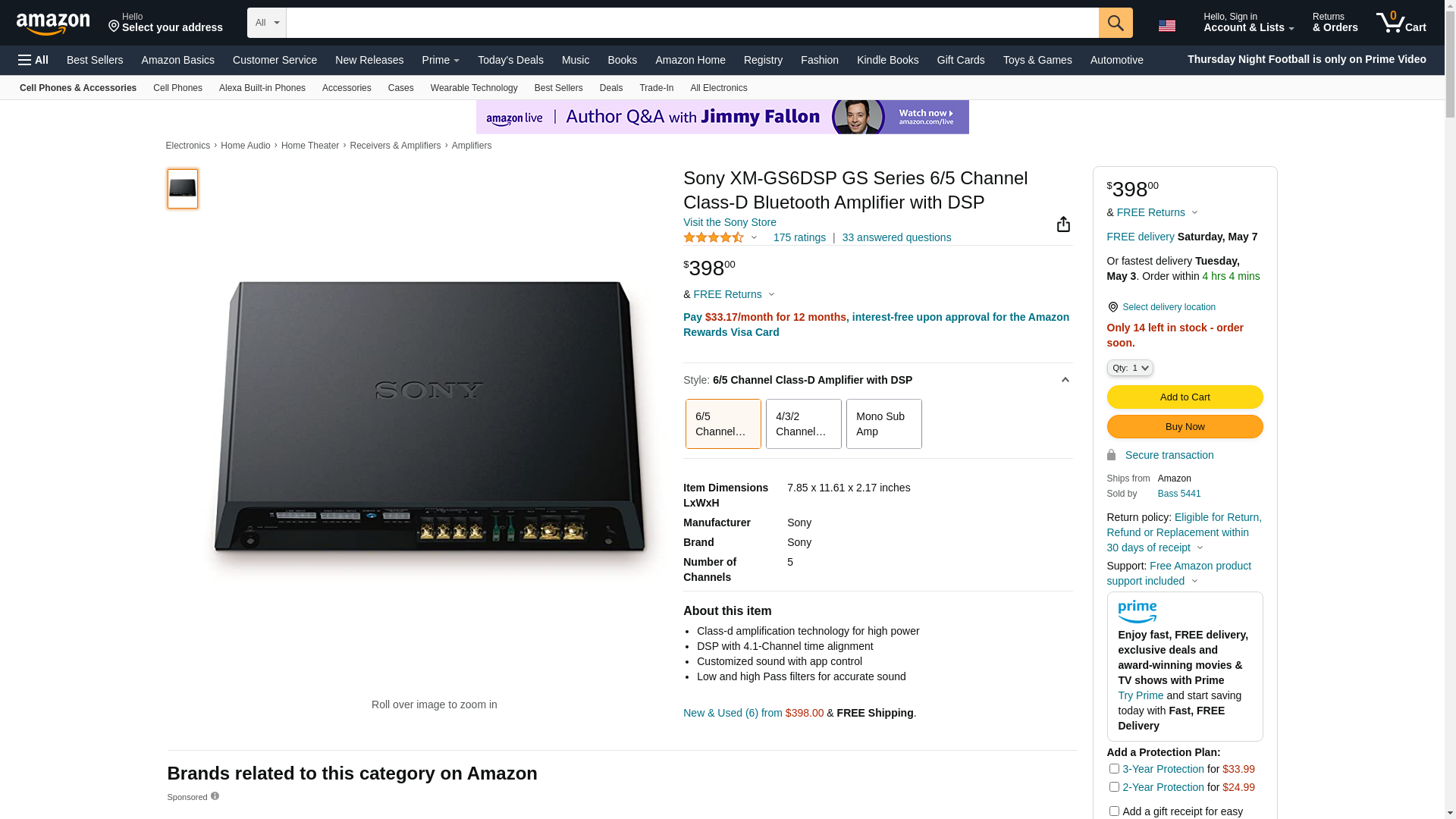 Sony XM-GS6DSP GS Series 6/5 Channel Class-D Bluetooth Amplifier with DSP