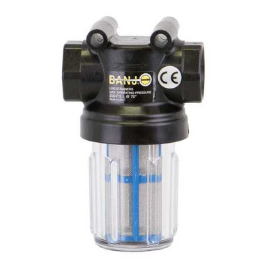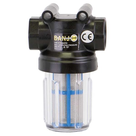 | Feature | Price For: Each Max. Fluid Temp.: 150 Degrees F Screen Material: 316 Stainless Steel Housing Material: Polypropylene Connection Type: FNPT Color: Clear Bowl Color: Clear Item: Mini T-Line Strainer Microns: 297 Mesh: 50 Flow Rate: 30 Screen Area: 6.75 sq. in. Max. Pressure: 100 psi @ 70 Degrees F Pipe Size: 3/4" Gasket Material: EPDM Length: 5" |