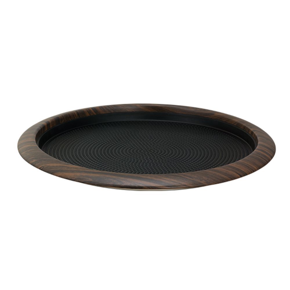 Service Ideas TR1412RIDW Tray with Removable Insert, 12" Round, Stainless Steel, Dark Wood
